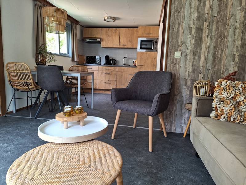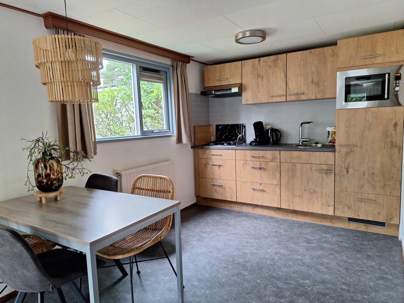 Het vierpersoons bungalow chalet ligt aan het familieplein met een eenroedige hooiberg. Na binnenkomst kunt u meteen de koffers in een van de twee slaapkamers plaatsen. De slaapkamers zijn voorzien van boxsprings. In de hal bevindt zich de toegang tot de badkamer met douche, toilet en wastafel. Aan het eind van de hal doet u de deur open naar de eigentijds ingerichte woonkamer met aangrenzende keuken en eetgedeelte. Van alle gemakken voorzien kan uw vakantie nu echt beginnen.