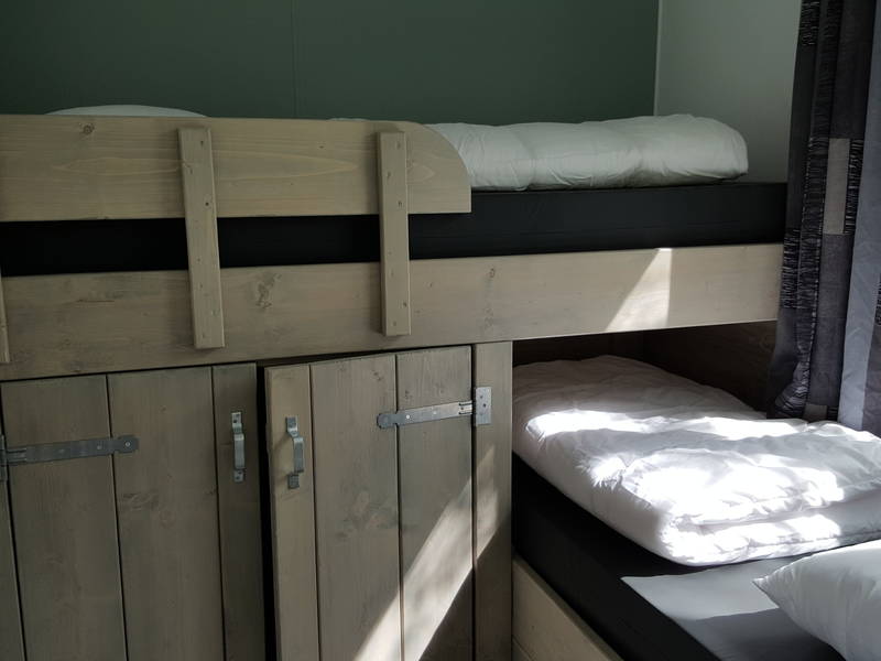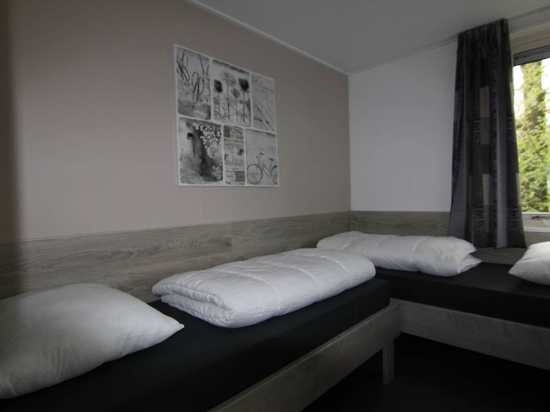 De 4 slaaplodges zijn stoere onderkomens en iedere lodge heeft 3 slaapkamers. Een slaapkamer heeft een 2 persoonsbed en de andere kamers zijn voorzien van 2 eenpersoonsbedden. Verder is de slaaplodge voorzien van een badkamer met douche en toilet. Bij een verblijf met een groepsgrootte tot 18, kunt u ervoor kiezen slechts gebruik te maken van 3 lodges. Als u dit aangeeft bij uw reservering, krijgt u € 100,- korting op de huurprijs.