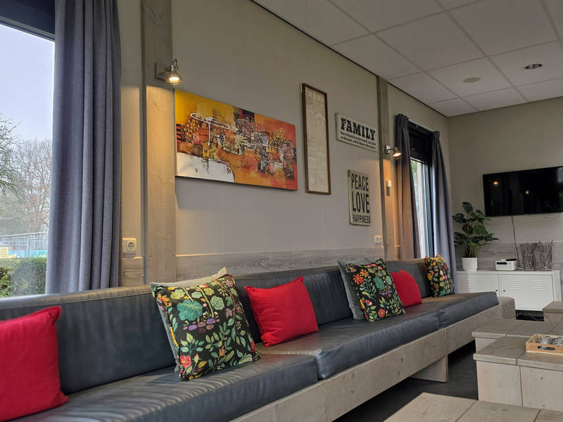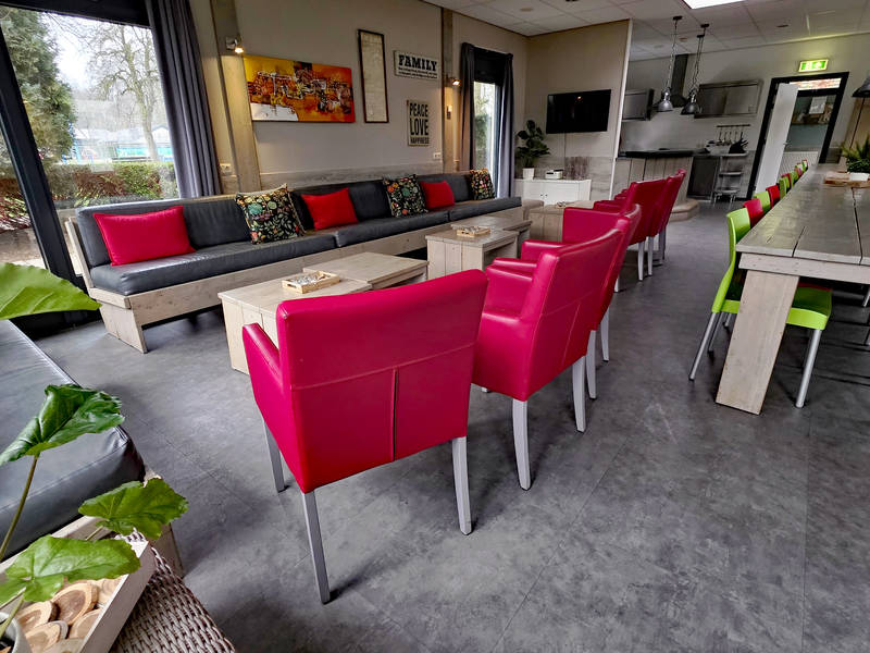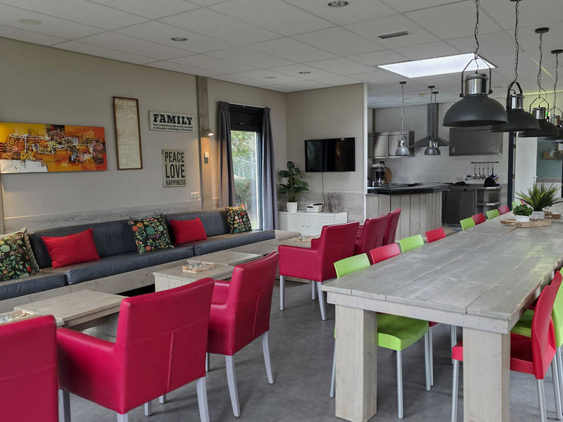 In de centrale ruimte kunt u gezellig onthaasten in de grote living, die voorzien is van een bar en voldoende zit gelegenheden. De open keuken is van alle gemakken voorzien en nodigt uit om gezamenlijk lekker te koken. Vanuit de living kunt u de kinderen in de gaten houden die zich wel vermaken in de grote speeltuin.